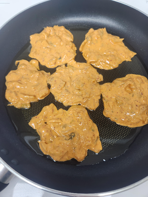 7. 김치전은 튀김가루가 들어갔기 때문에 기름을 충분히 부어서 예열후에 원하시는 모양으로 구워내시면 됩니다.