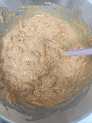 5. 조금씩 물을 넣고 저어가면서 흐르는 농도가 아니라 살짝 되직한 정도로 해주시면 딱 좋습니다.