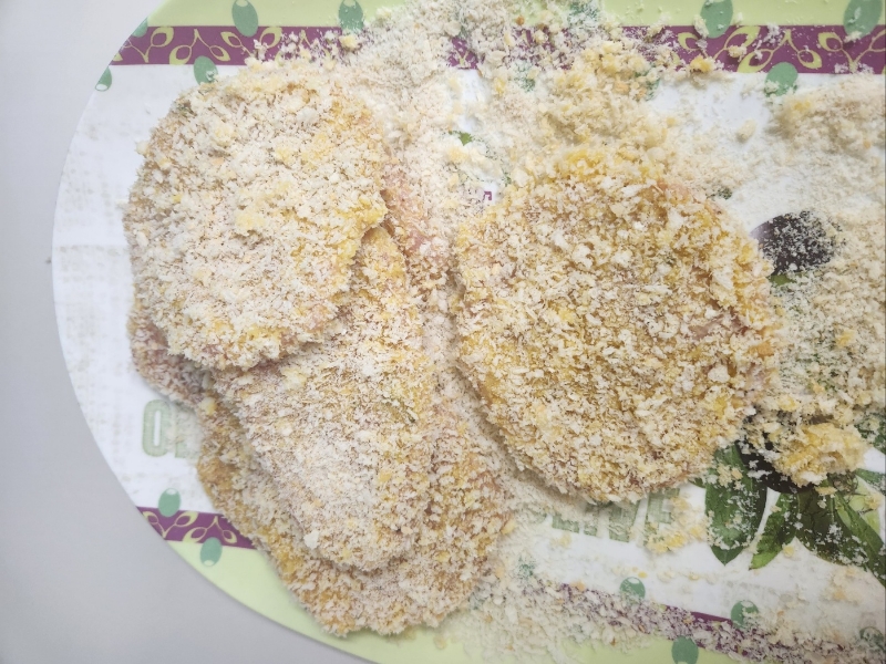 4. 밀가루를 입혀주시고, 계란을 풀어 계란을 입혀줍니다. 그뒤에 마지막으로 빵가루를 묻혀주시면 끝납니다.