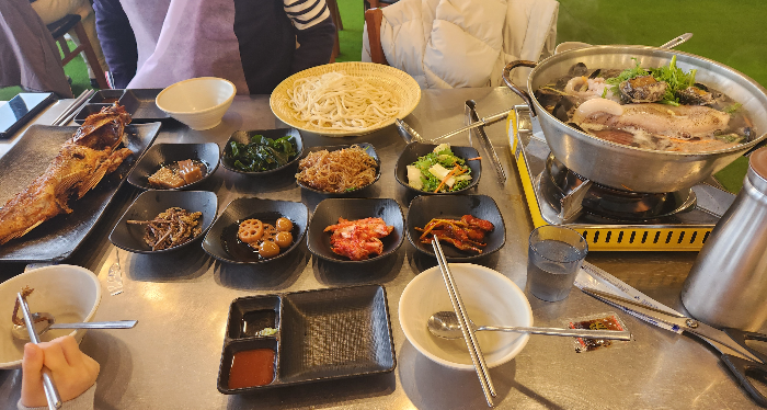 마지막은 역시나 칼국수로 마무리~ 칼국수면 양이 많아서 저희는 다 먹지 못하고 남겼어요 전반적으로 양도 푸짐하고 맛도 만족스러워서 영종도 맛집, 인스파이어 리조트 맛집으로 소나무식당 진짜 잘~ 골랐다! 다음에 또 방문해야겠다 생각하면서 식사를 마쳤던거 같아요. 여행을 계획하면서 식사시간에 맛없는 집에서 식사하면 기분 확~ 상하게 되신 적 있으신가요? 여기는 바다보면서 맛있게 식사할 수 있어서 만족스러웠어요.