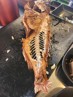 금방 이렇게 뼈만 남게되었지만요. 평상시에 먹기 힘든 생선이지만 부드럽고 쫄깃한 맛이 일품이였어요.